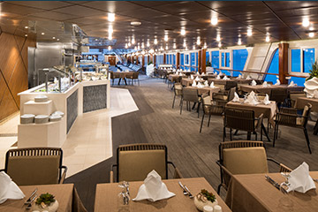 まるで“海に浮かぶオーベルジュ”のように ダイニングは全部で5か所。すべて、オープンシーティング制となっているためお好みの食事を、お好きな時にお召し上がりいただくことが可能です。